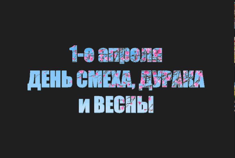 Рекламный клип к 1 апреля. Этот ВИДЕО-КЛИП служит образцом для моих заказчиков которые хотят заказать у меня готовый клип с фотографиями между картинками, с одними фотографиями без картинок или с одними картинками без фотографий. Также могу сделать ВИДЕО-КЛИП с любым звуковым сопровождением или вообще без него. Цена клипа зависит от продолжительности песни 30 секунд = 80 рублей. Все интересующее Вас подробности вы можете уточнять в комментариях под этим клипом а также в моих социальных сетях - моя страница в Вконтакте https://vk.com/id350662402 и моя страница в Одноклассниках https://ok.ru/profile/541972752936. А также подписывайтесь на мои группы в социальных сетях Вконтакте https://vk.com/club201004888 и в Одноклассниках https://ok.ru/group/65186243674152 и на мой Ютуб-каная - https://www.youtube.com/channel/UCvwIDObCi69KKFLmQ925GBQ !