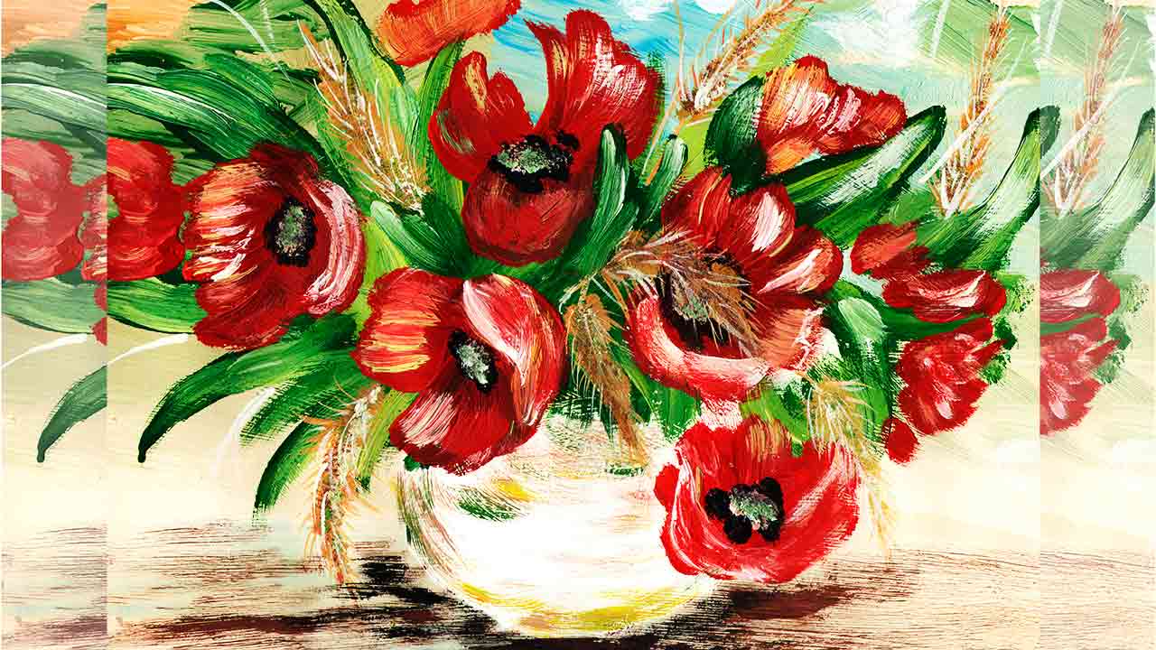 Как нарисовать маки легко. Как нарисовать натюрморт. Как нарисовать маки в вазе. Рисуем цветы легко.