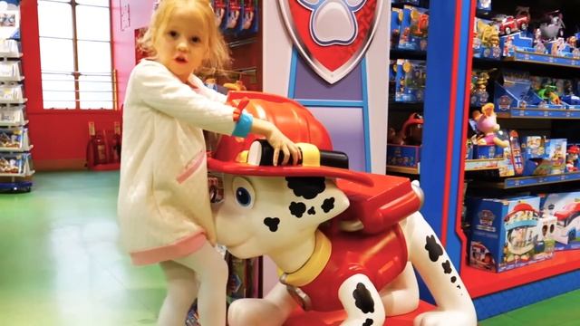 Настя и папа в магазине игрушек в Лондоне