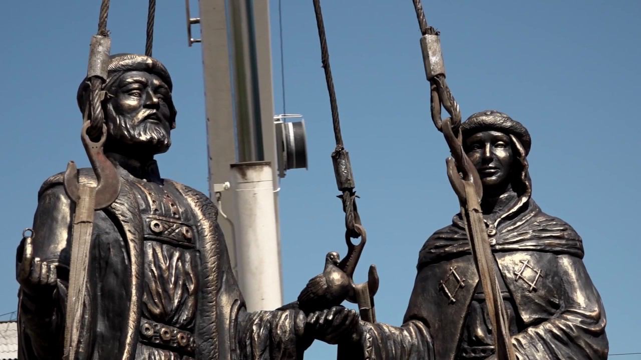 Установка памятника святым Петру и Февронии Муромским