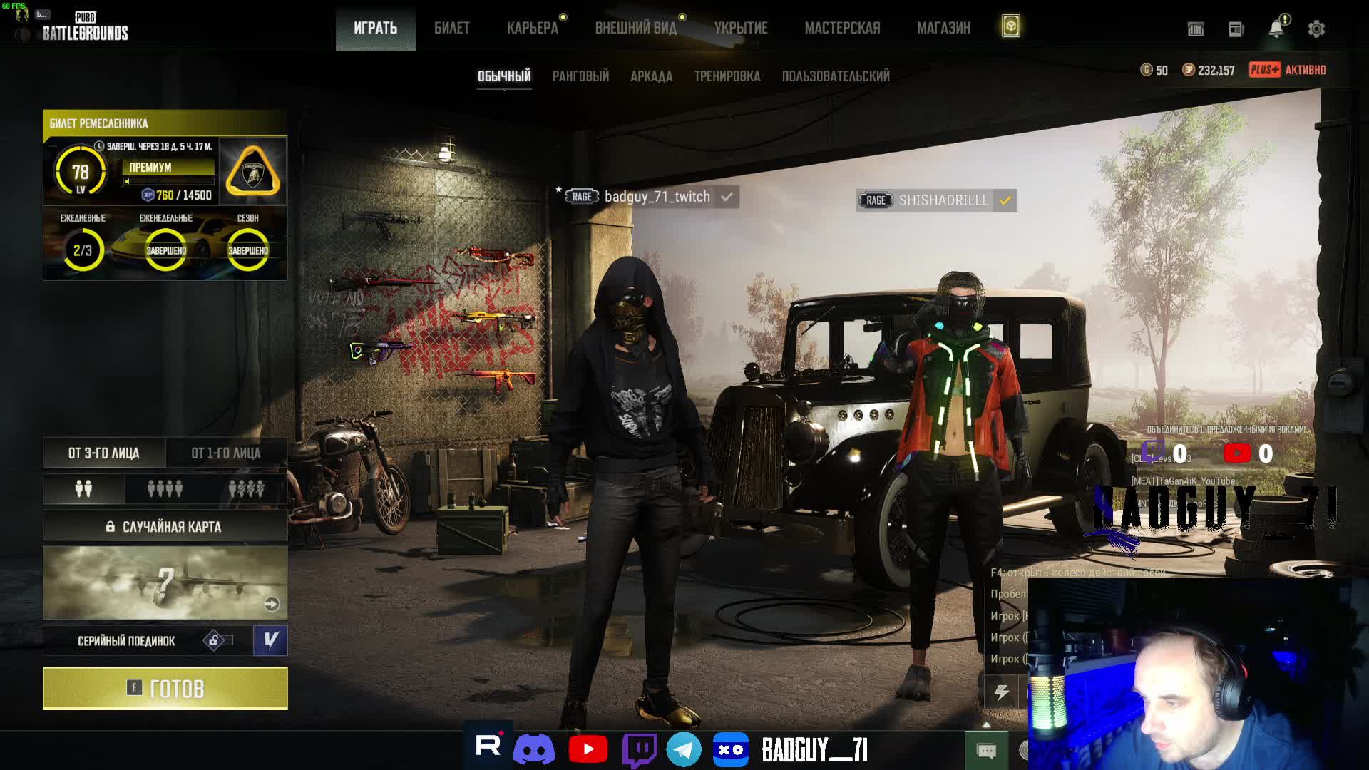 Поддержать стримера: https://www.donationalerts.com/r/badg... Карта для прямого доната: 2200 3005 6657 3711 Канал на Twitch: / badguy_71 Мой телеграм канал: https://t.me/badguy_71 Мой Kick: https://kick.com/badguy-71 Мой VK Play: https://live.vkplay.ru/badguy_71 Всем привет! Зовут Дима, 41 годик, играю в pubg много и с удовольствием. Стримы каждый день. Мой компьютер Процессор Intel Core i5-11400F Видеокарта Palit GeForce RTX 3060 Ti Оперативная память 32 gb