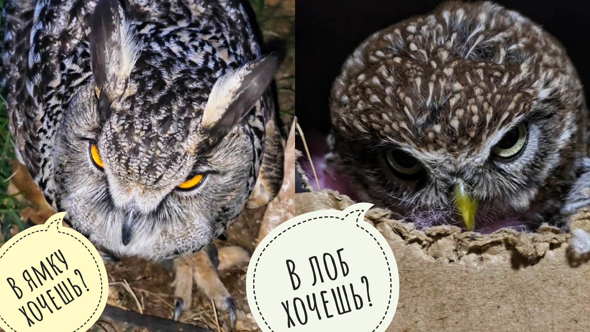 Сова Ёль копает ямку для меня? Сыч Лучик намекает ударом в мой лоб, что пора его кормить