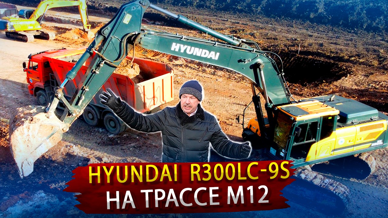 Экскаватор Хундай 300 LS на строительстве трассы М 12. Обзор спецтехники из Кореи