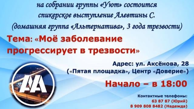 Аля С. 3 года трезвости. Домашняя группа «Альтернатива» г.Хабаровск