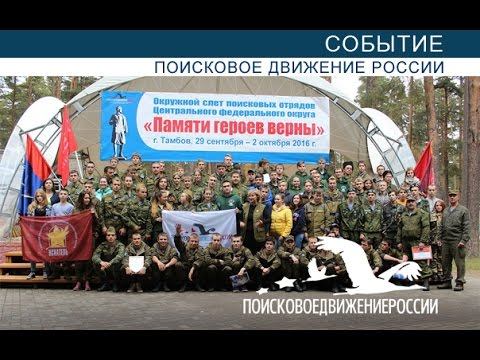 СЛЁТ ПОИСКОВЫХ ОТРЯДОВ ЦЕНТРАЛЬНОГО ФЕДЕРАЛЬНОГО ОКРУГА С 29 сентября по 2 октября в тамбовском центре творчества и оздоровления КОСМОС прошёл слёт поисковых отрядов Центрального федерального округа. Слёт проводился Тамбовским региональным отделением Поискового движения России, управлением по связям с общественностью администрации области, управлением образования и науки области в рамках реализации государственной программы ПАТРИОТИЧЕСКОЕ ВОСПИТАНИЕ ГРАЖДАН РОССИЙСКОЙ ФЕДЕРАЦИИ НА 2016 - 2020 и Государственной программы Тамбовской области РАЗВИТИЕ ИНСТИТУТОВ ГРАЖДАНСКОГО ОБЩЕСТВА НА 2014 - 2020. В течение нескольких дней юные поисковики принимали участие в увлекательных практических тренингах, мастер-классах по проектированию музейных экспозиций, военно-спортивных играх, дискуссионных площадках по вопросам патриотического воспитания молодежи. Преподаватели рассказали поисковикам о правилах оказания медицинской помощи в полевых условиях, основах топографии и работы с картами, технике безопасности при обнаружении взрывоопасных предметов... Соревновались в различных конкурсах и квестах. в этом году гостеприимная тамбовская земля приняла у себя более 150 поисковиков из всех регионов Центрального федерального округа. На открытии Слета состоялась встреча бойцов поисковых отрядов с полномочным представителем Президента Российской Федерации в Центральном федеральном округе А.Д. Бегловым, членом Совета Федерации Федерального Собрания Российской Федерации А.В. Кондратьевым, главой администрации Тамбовской области А. В. Никитиным и ответственным секретарем Общероссийского общественного движения по увековечению памяти погибших при защите Отечества ПОИСКОВОЕ ДВИЖЕНИЕ РОССИИ Еленой Цунаевой... Главным событием открытия слёта стал церемониал передачи останков бойцов Красной Армии - Негодяева Ивана Ивановича, уроженца села Алексеевка Туголукского района Тамбовской области и Баженова Кирилла Аверьяновича уроженца города Тамбова, которые были обнаружены в ходе поисковой работы участниками военно-исторического лагеря КАЛИНИНСКИЙ ФРОНТ в Ржевском районе Тверской области. Командир поискового отряда НАБАТ из города Ульяновск Олег Ерохин передал родственникам медаль ЗА БОЕВЫЕ ЗАСЛУГИ политрука Михеенкова Тихона Васильевича, уроженца села Знаменка Тамбовской области... Андрей Севостьянов, участник поискового отряда Ярославской области - Поисковики - это люди, которые видят последними солдата, и надо сделать все правильно, чтобы не было стыдно потом перед его родными и близкими... Виктор Тарасов, племянник найденного бойца Ивана Негодяева - Долго сестры бились с такой целью, чтобы найти, но везде был один ответ, что пропал без вести, и вот благодаря вашим усилиям, вашему труду удалось узнать судьбу нашего родного дяди... Далее поисковиков ждала практическая работа и обширная досуговая программа, включающая в себя комплекс мероприятий и коллективных творческих дел - диалог поколений на тему ВЗГЛЯД НА ВЕЛИКУЮ ВОЙНУ СКВОЗЬ ДЕСЯТИЛЕТИЯ, вечер памяти, вечер военной песни У КОСТРА ПАМЯТИ, просмотр документальных фильмов о поисковой деятельности... СПОРТИВНО-ПАТРИОТИЧЕСКОЕ ДВИЖЕНИЕ "ДРУЖБА" https://vk.com/sport.patriot.drujba Созданию фильма оказывали содействие: Общероссийская общественная организация «Офицеры России» (ООО "ОФИЦЕРЫ РО