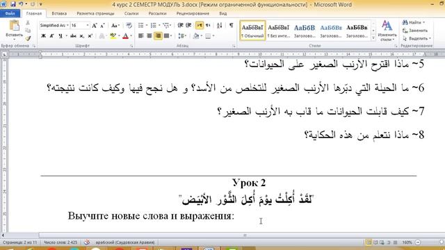 Арабский язык(продвинутый уровень)6(5212)