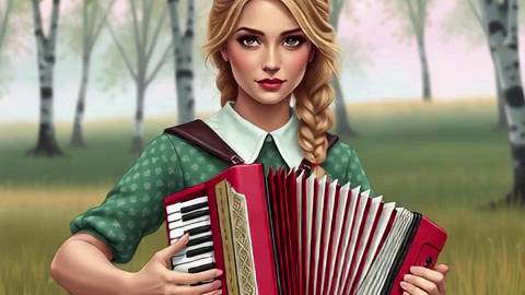 Анимационное видео: Девушка на поле с аккордеоном. Песни