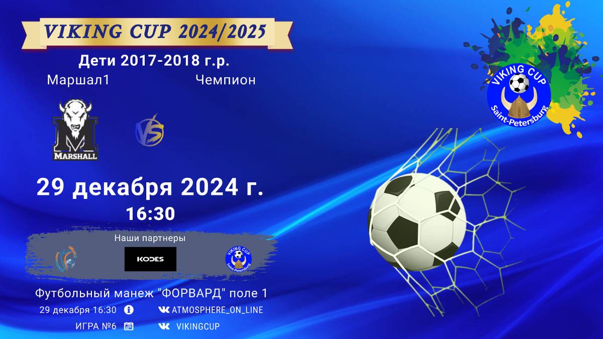 VIKING CUP среди команд 2017-2018 г.р. (U6-U7), Поле 1 29 ДЕКАБРЯ 2024 САНКТ-ПЕТЕРБУРГ, ФЦ "Форвард" ФК "Маршал 1" - ФК "Чемпион"/VIKING CUP, Игра №6, 29-12-2024 16:30