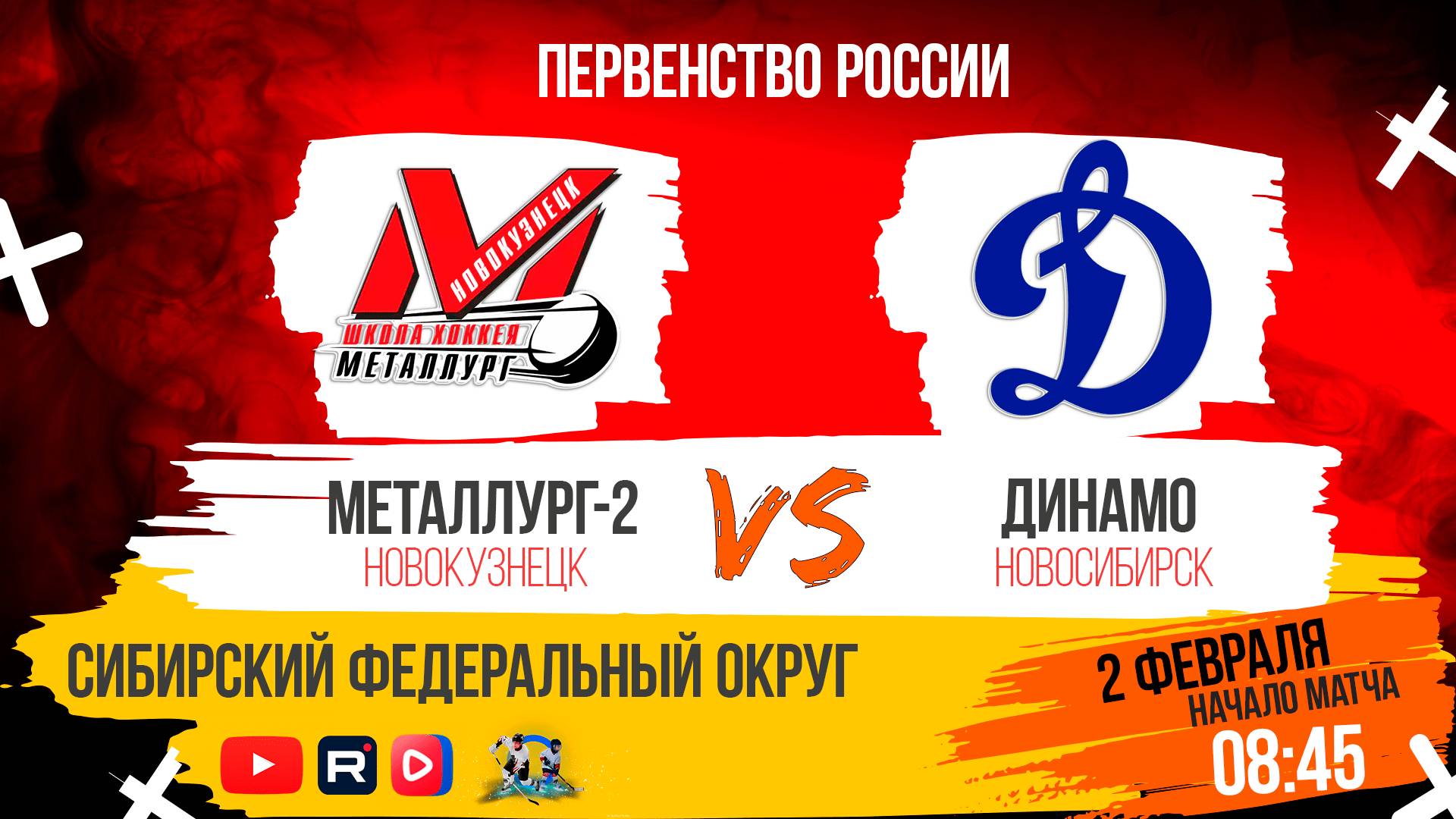 ПРЯМАЯ ТРАНСЛЯЦИЯ МАТЧА 02.02.2025г. в 8:45 МЕТАЛЛУРГ-2 (Новокузнецк) VS ДИНАМО (Новосибирск) ПЕРВЕНСТВО РОССИИ СРЕДИ ЮНОШЕЙ 2010 г.р. СИБИРСКИЙ ФЕДЕРАЛЬНЫЙ ОКРУГ САЙТ ПЕРВЕНСТВА (РЕЗУЛЬТАТЫ, СТАТИСТИКА): http://sfo.fhr.ru СТАДИОН: МАЛАЯ АРЕНА ЦР КОММЕНТАТОРЫ: Сергей Пичугин ТРАНСЛЯЦИЯ НА YOUTUBE: https://youtube.com/live/SIlK1RL6GDc?feature=share ТРАНСЛЯЦИЯ В СООБЩЕСТВЕ VK: https://vkvideo.ru/video-229078074_456239047