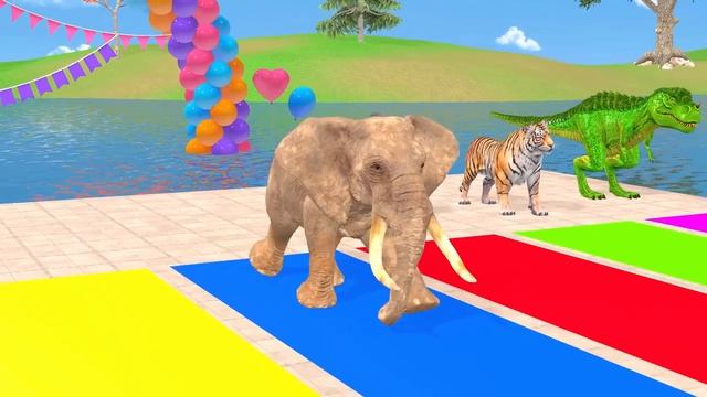 Long Slide Game With Cow Elephant Gorilla Hippopotamus Tiger - 3d Animal Game - Funny 3d Animals (3)