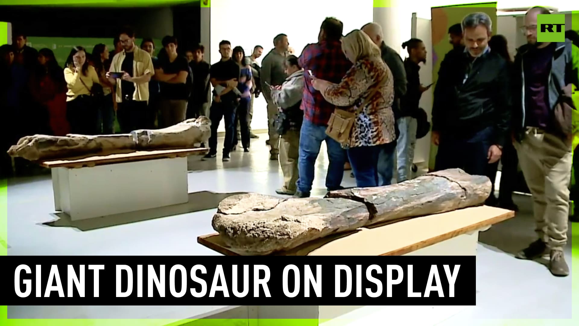 The fossilized remains of the giant long-necked dinosaur discovered in 2019 was presented at the Cipolletti Cultural Complex in Argentina. It is the largest dinosaur found so far in Río Negro. According to scientists, this dinosaur weighed 50 tons and measured more than 30 meters long. ------------------------------------------------------------------------------------------- Freedom over censorship, truth over narrative. Follow us on Facebook: https://www.facebook.com/RTnews Follow us on Telegram: https://t.me/rtnews Follow us on Twitter: https://twitter.com/RT_com