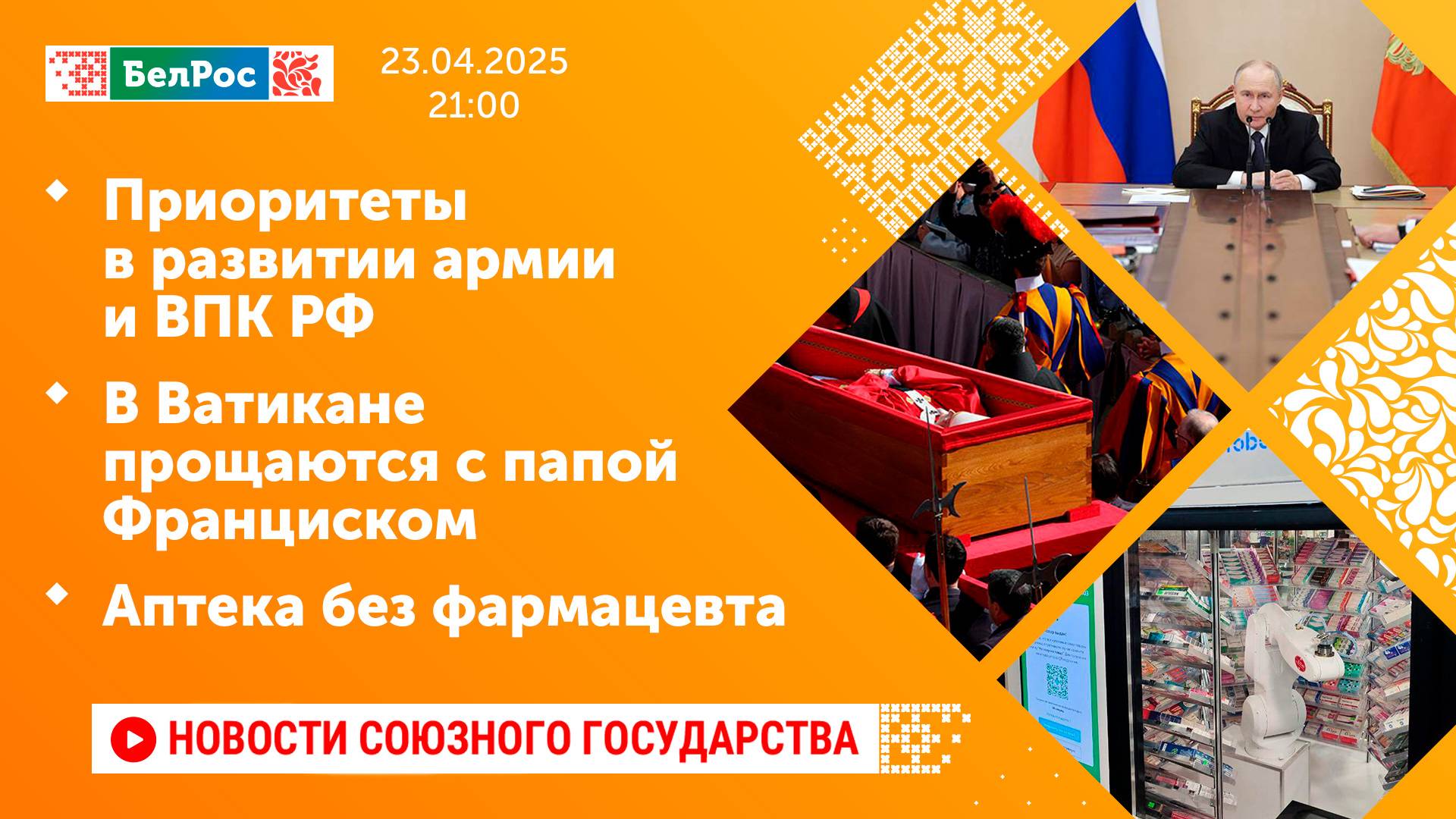 Приоритеты в развитии армии и ВПК РФ/ В Ватикане прощаются с папой Франциском/ Аптека без фармацевта