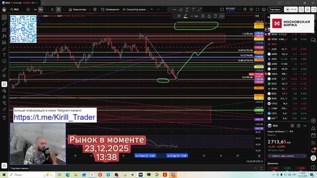 Больше информации в моем телеграмм канале https://t.me/Kirill_Trader Рассмотрел возможное движение цены на сегодняшний торговый день. Обозначил цели по индексу. Желаю всем приятного и продуктивного торгового дня. 23.12.2025 13:40