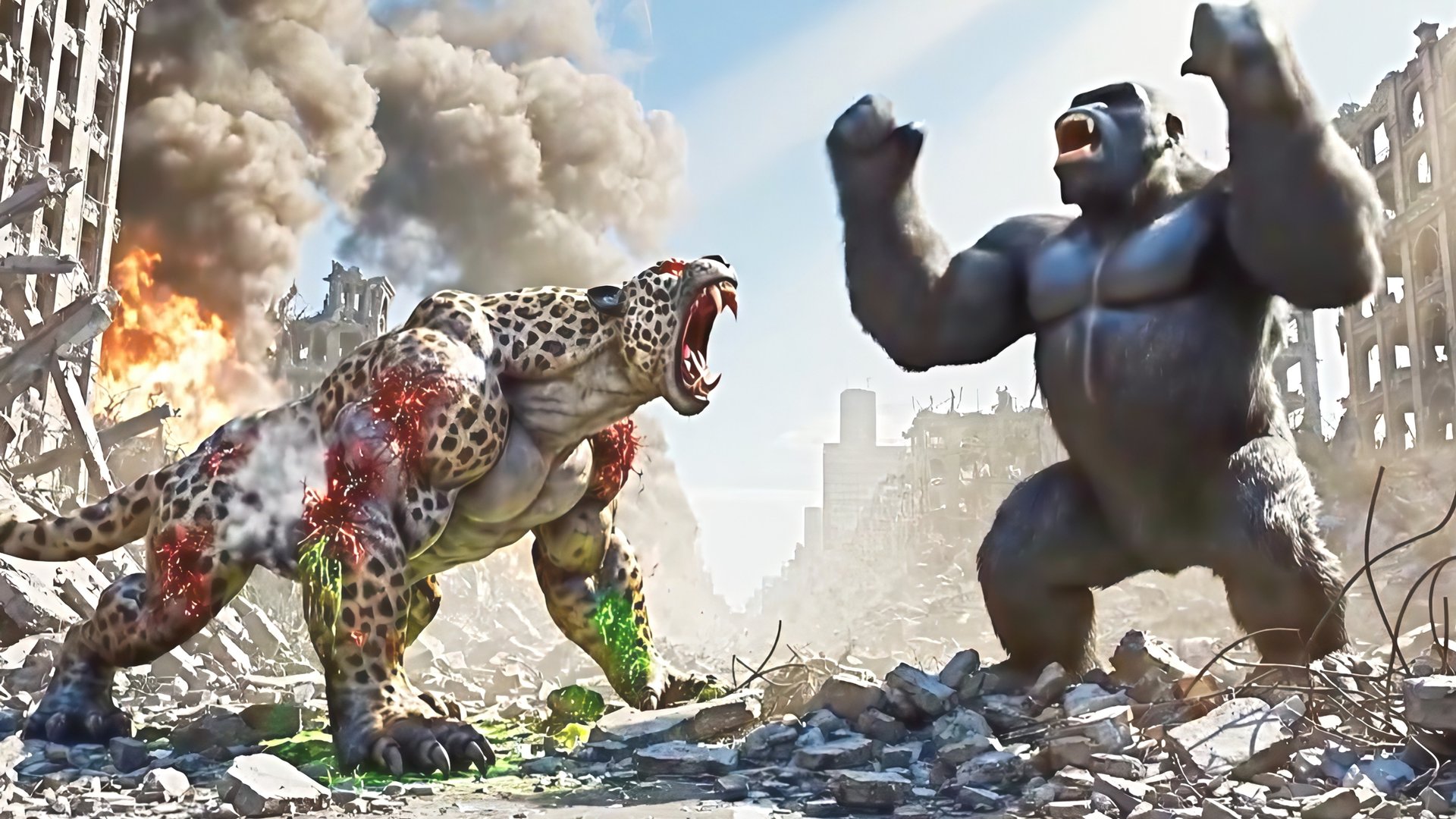 Кинг Конг проти монстра ягуара. AI video.