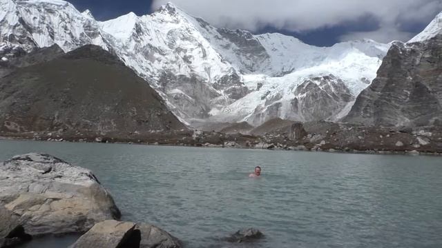 Непал .Гималаи.Октябрь 2018.Поход к Чо Ойу(8200) .Поход от лагеря Гокио до Чо Ойу-9 км туда и 9 назад.Учитывая что мы стандартно ходили 10 км/день и на высоте 4800-5300 ,за день нагрузка приличная.Но у меня хобби-плавание в холодной воде.Я специально пошел туда.И это того стоило.Я не альпинист и подняться на Чо Ойу не могу,но мое маленькое ЭГО тешит то что на Чо Ойу поднимаются многие,а поплавать у Чо Ойу на высоте 5300 и в воде +0 смог я один(на 99%)