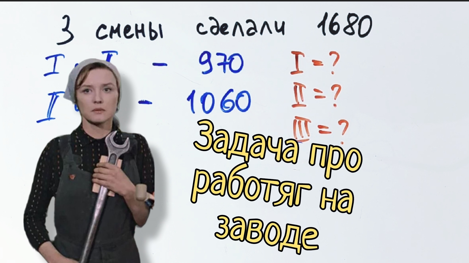 Телеграм "Этому не учат в школе" — https://t.me/yellow_school Фабрика работает в три смены, и за три смены было изготовлено 1680 деталей. Первая и вторая смены вместе изготовили 970 деталей. А вторая и третья смены вместе изготовили 1060 деталей. Сколько деталей изготовила каждая смена по отдельности?