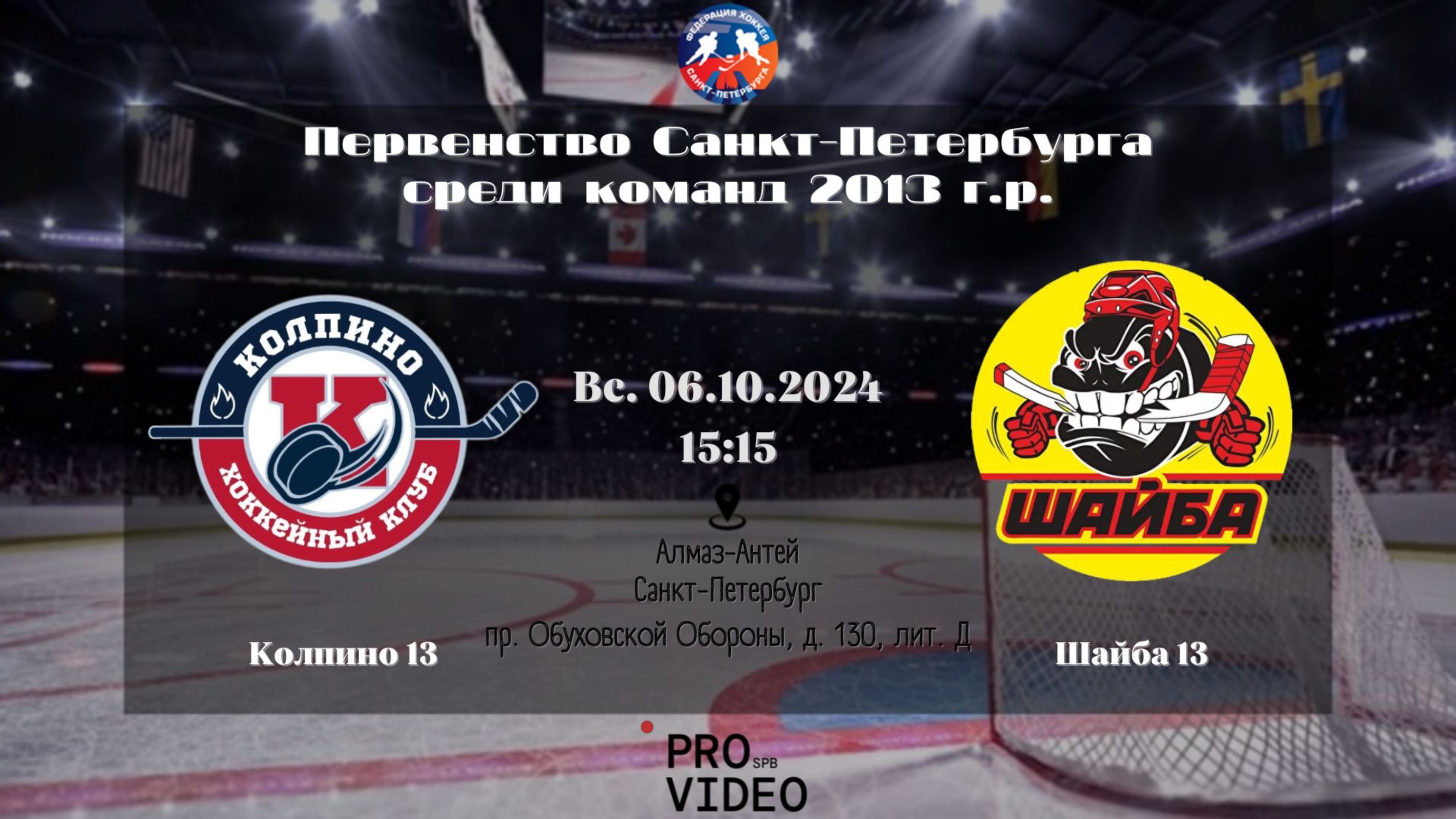 Первенство Санкт-Петербурга среди команд 2013 г.р. Группа А Сотрудничество и вопросы по трансляции: 8 (962) 423-33-89 Алена 8 (963) 318-18-30 Даниил (WhatsApp) Мы в ВКонтакте: https://vk.com/pro_videospb Мы на YouTube: https://www.youtube.com/@PROVIDEOSPB Мы на RUTUBE: https://rutube.ru/channel/19961107/