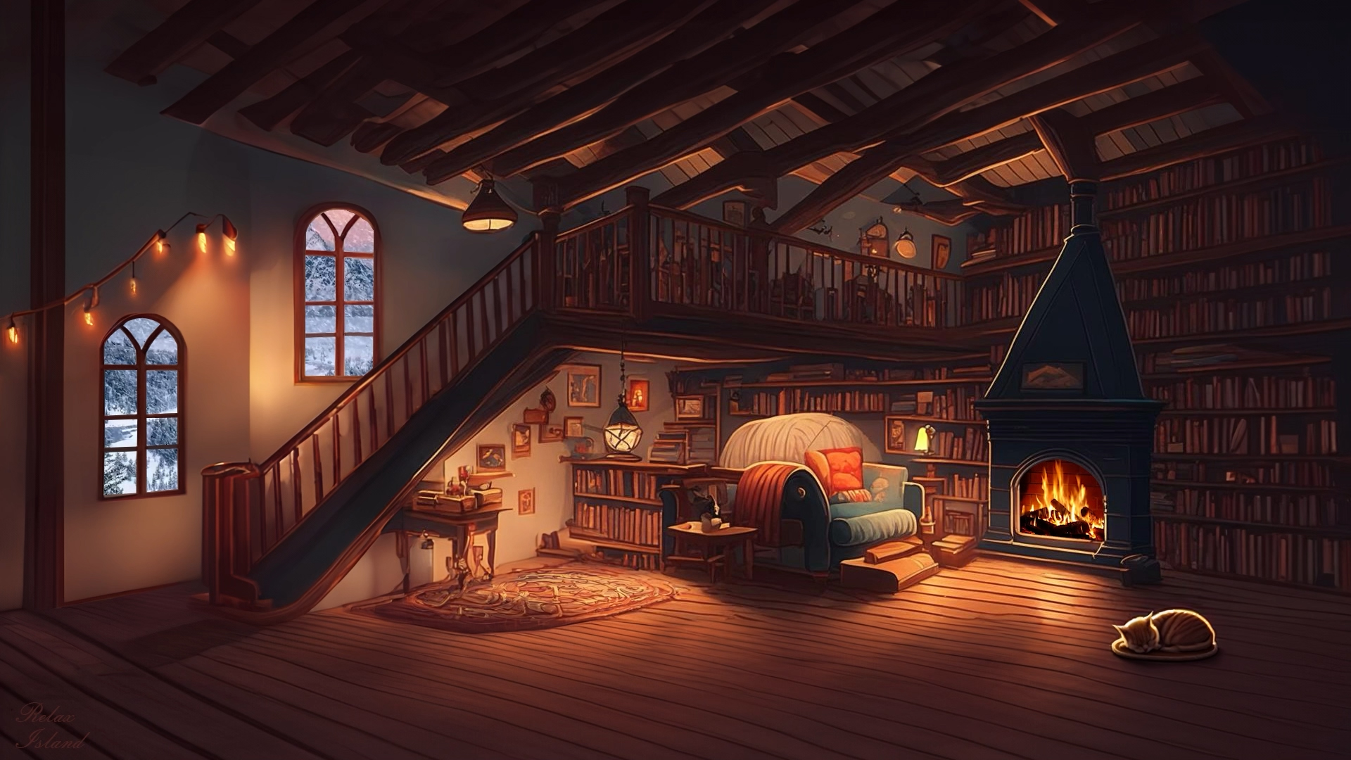 Быстро усните за 3 минуты под звук вьюги и потрескивание камина в сказочном доме глядя на огонь и кота. В этом красивом видео мы видим, как мирно на коврике спит кот зимой у камина и шумит метель за окном. Здесь царит атмосфера спокойствия и комфорта, которую создают горящий камин, светильники и книжные полки. За окнами идет снег, слышен шум вьюги. Это создает атмосферу зимней сказки. Видео может помочь расслабить ум и тело, способствуя большей ясности и более уравновешенному и продуктивному состоянию. Концентрация внимания на работе и учебе усиливается многократно, когда вы слушаете шум вьюги и звуки огня из камина. Это достигается за счет того, что заглушаются остальные звуки и мозг начинает концентрироваться на поставленной задаче. Белый шум для сна, учебы, работы, релаксации и медитации. Чарующий шум вьюги и звук костра в доме для сна и релакса. Смотрите на камин, метель за окном и слушайте расслабляющие звуки огня. Вьюга для сна в уютной гостиной расположенной в хорошем деревянном доме недалеко от леса. #ЗвукВьюги #ШумМетели #Вьюга #ШумВьюги #Метель #Камин #КрепкийСон #ЗвукКостра #БелыйШум #ЗвукиОгня #ШумКостра #ТрескДров #Медитация #МузыкаДляРелаксации #МузыкаДляМедитации #АСМР #АСМРдляСна При создании ролика были использованы изображения ruDALL-E: https://rudalle.ru/check_kandinsky2/dd2ccb39-c65f-4184-8748-c986694360fc Видео оригинальное, было создано владельцем канала в 3D программах. © Relax Island 2023. Все права защищены.