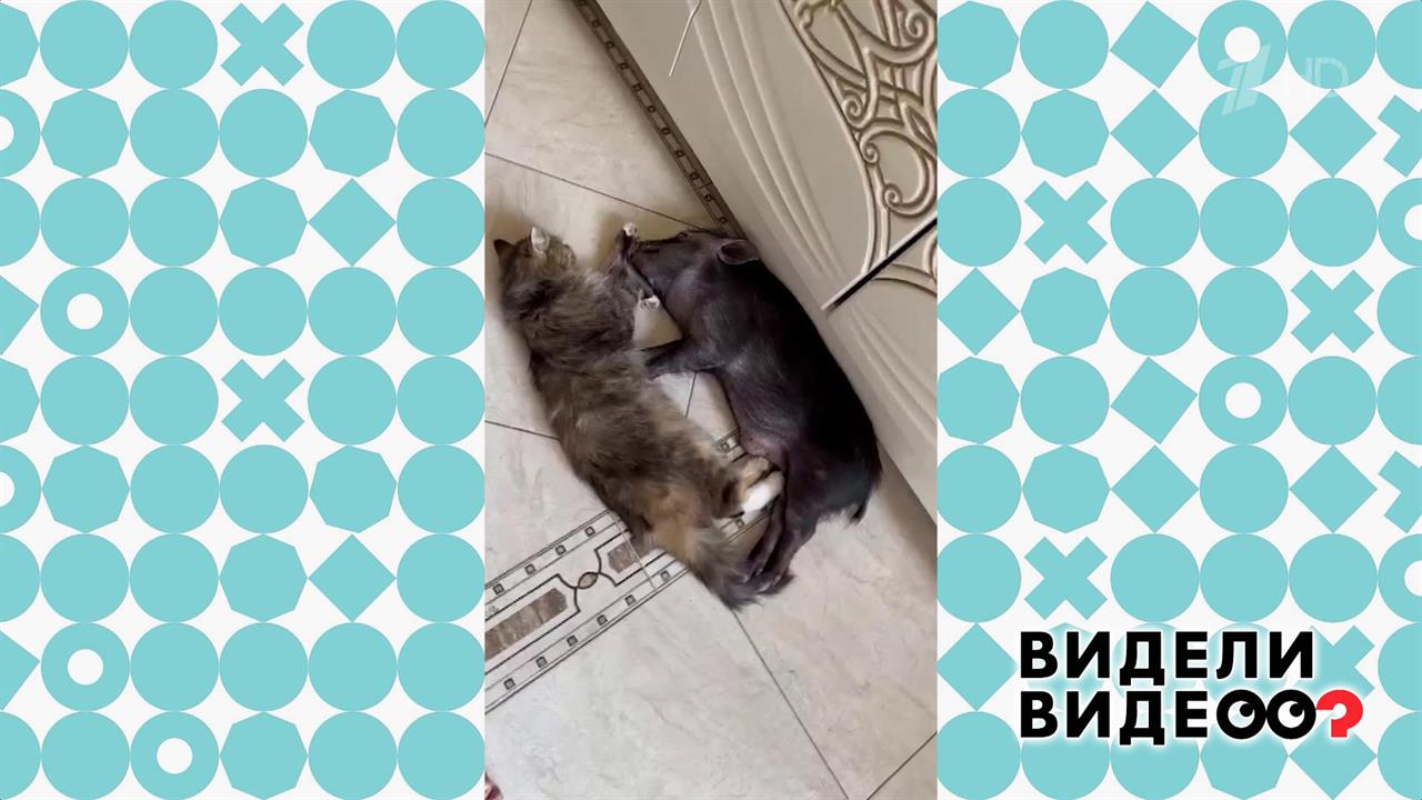 Кошка Василиса и минипиг Пумба — лучшие друзья. Они и играют вместе, и спят!