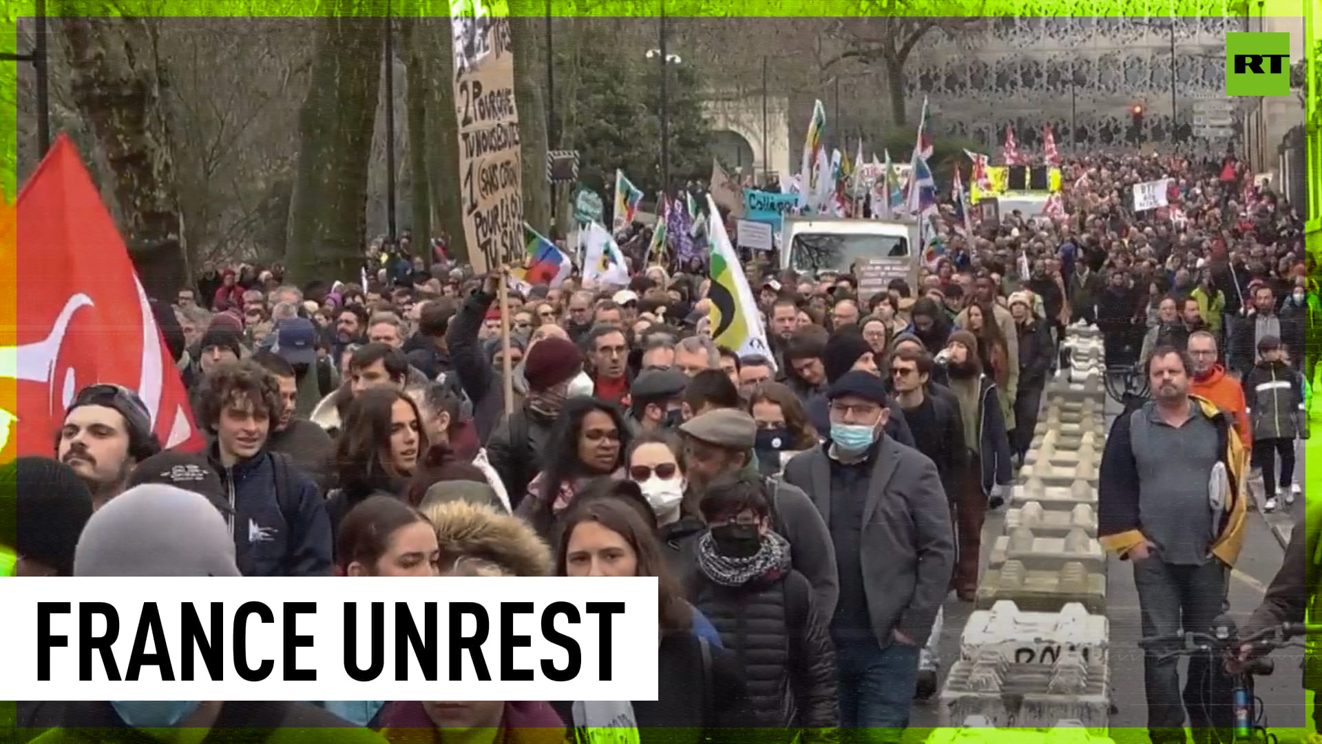 Thousands of protesters joined with unions in a large rally against the government's pension reform in Nantes, France. Clashes broke out between police and some of the demonstrators as tensions escalated. Police used tear gas, stun grenades and rubber bullets to disperse the crowds. ------------------------------------------------------------------------------------- Freedom over censorship, truth over narrative. Follow us on Facebook: https://www.facebook.com/RTnews Follow us on Telegram: https://t.me/rtnews Follow us on Twitter: https://twitter.com/RT_com