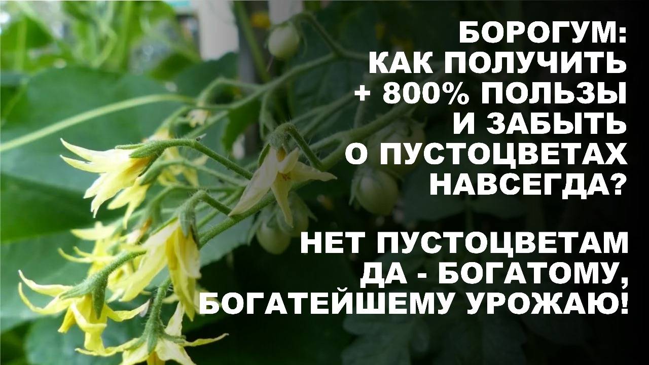 Как ликвидировать пустоцветы на томатах, перцах, огурцах и т.д.? Как не остаться без урожая?.. Давайте узнаем авторитетное мнение биолога, кандидата биологических наук Дмитрия Скотникова. Он утверждает, что для завязывания плодов овощных, полевых и плодово-ягодных культур жизненно необходим важнейший микроэлемент бор — это пятый элемент химической таблицы Д.И. Менделеева. Ведь именно он отвечает за оплодотворение цветов и завязывание плодов. Но проблема в том, что в почве этот микроэлемент немобилен. И его обязательно нужно внести в питание растениям в вегетационный период. Ученый предлагает решить эту проблему с помощью удобрения Борогум — https://bashinkom-v-dom.ru/product/borogumm-zavyaz-plodocvetokorneobrazovanie-ot-pustocvetov-bor-gu Почему важно вносить этот препарат по вегетации растений? Дело в том, что Бор и остальные элементы Борогума помогают не только успешному опылению, но и служат для правильного развития уже завязавшихся плодов, способствуют обогащению урожая витаминами, минералами и антиоксидантами. Противопоказаний к применению Борогума нет, ведь он органический. Приготовьте рабочий раствор препарата: 1 чайную ложку Борогума растворите в 300 мл воды. Этого хватит для обработки до 10 квадратных метров любых культур. Обработки проводите в сухую, безветренную погоду. Первую обработку проведите уже на стадии бутонов, а последующие с интервалом 1 раз в 2 недели 2-3 раза за сезон. Важно, что обработки можно проводить и во время цветения, для насекомых-опылителей это безопасно! Хорошего вам урожая! Подробнее смотрите в видео.