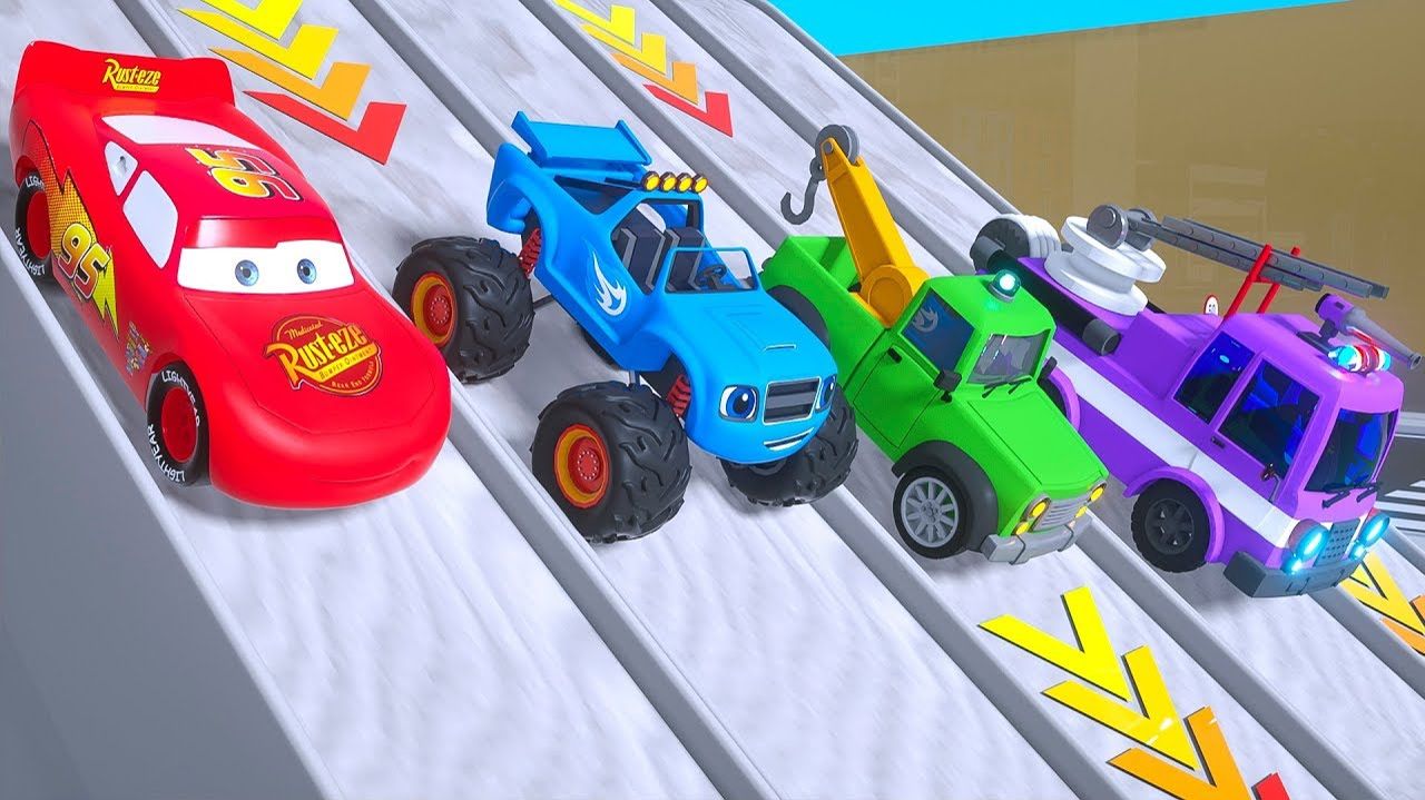 Учим цвета вместе с Маккуином, Блейзом и дорожными транспортными средствами воздушных шаров