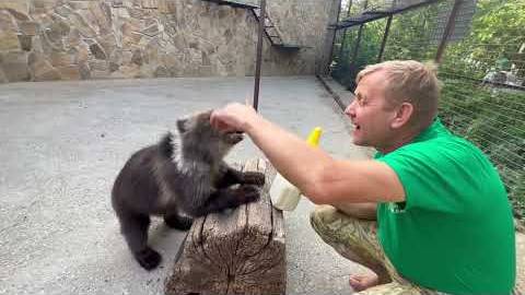 Олег Зубков кормит спасенного медвежонка Лейлу из новой БОЛЬШОЙ БУТЫЛКИ!