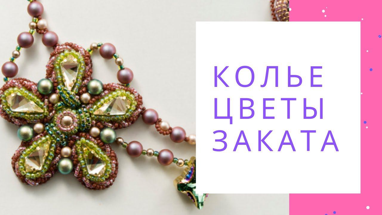 Колье из кристаллов Сваровски жемчуга и бисера Цветы заката. Купить колье ручной работы NataliaLuzik