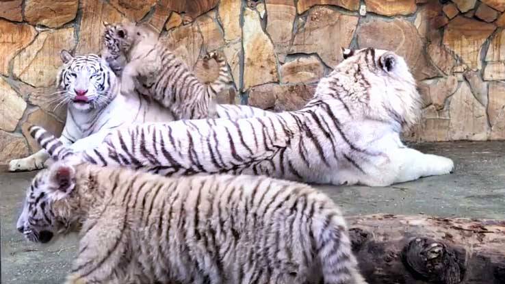 Такого не увидишь! Мать позволяет тигрятам всё, а отец рыкнул, чтоб не приставали!Семья БЕЛЫХ ТИГРОВ