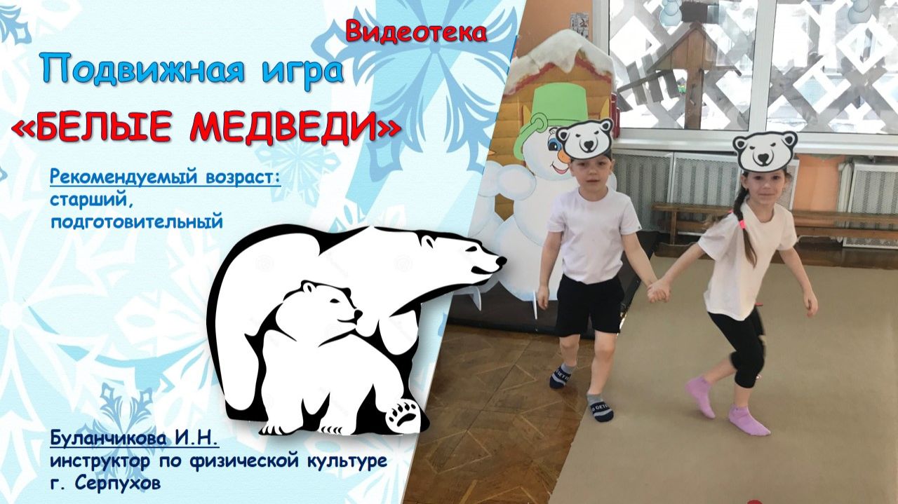 Подвижная игра «Белые медведи». Рекомендуемый возраст: 5 – 7 лет. Видеотека. Для педагогов ДОУ, родителей. Приобрести игровое оборудование к игре https://vk.com/market/product/belye-medvedi-212562500-12774016 Приобрести карточку игры https://vk.com/market/product/belye-medvedi-212562500-14264006 Ещё больше игр VK https://vk.com/@joymotion_23-videoteka-podvizhnyh-igr Еще больше игр RUTUBE https://studio.rutube.ru/playlist/1409829?scrollPosition=100 Мы ВКонтакте https://vk.com/joymotion_23 #Радость_в_движении #Видеотека #Подвижные_игры #Подвижная_игра #Играем_с_детьми #Дошкольники #Белые_медведи