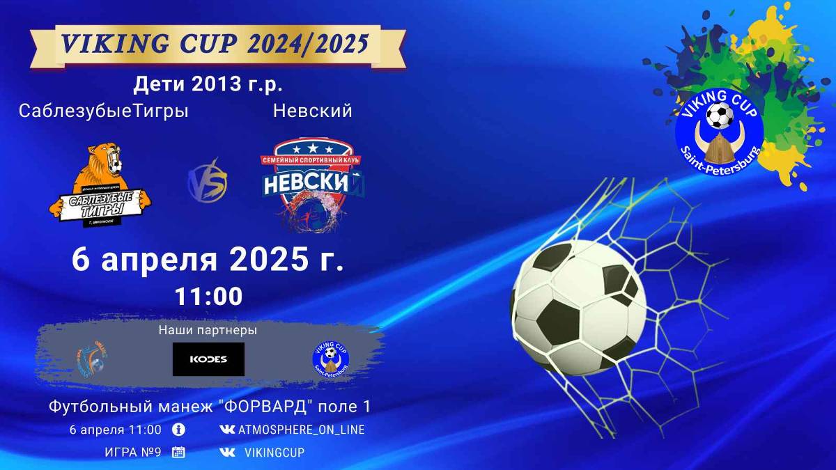 VIKING CUP среди команд 2013 г.р. (U12), Поле 1 6 апреля 2025 САНКТ-ПЕТЕРБУРГ, ФЦ "Форвард" ФК "СаблезубыеТигры" - ФК "Невский"/VIKING CUP, Игра №9, 06-04-2025 11:00
