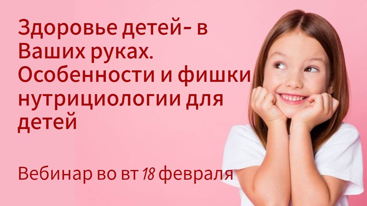 Здоровье детей- в Ваших руках! Нутрициология - детям. Приглашение на вебинар Вт, 18.02.25 в 19 Мск.