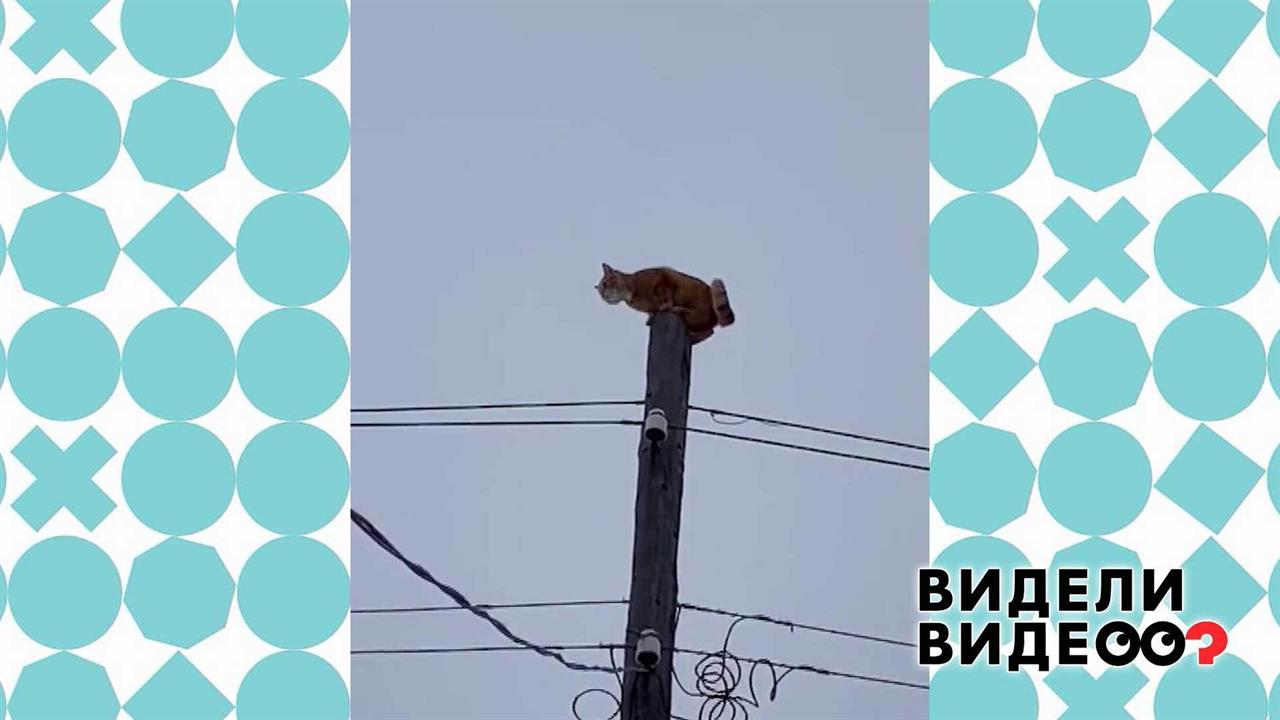 Спасаясь от кота, кот Персик забрался на самый верх электрического столба. Хозяева перепугались не на шутку, но, к счастью, эта история закончилась благополучно.