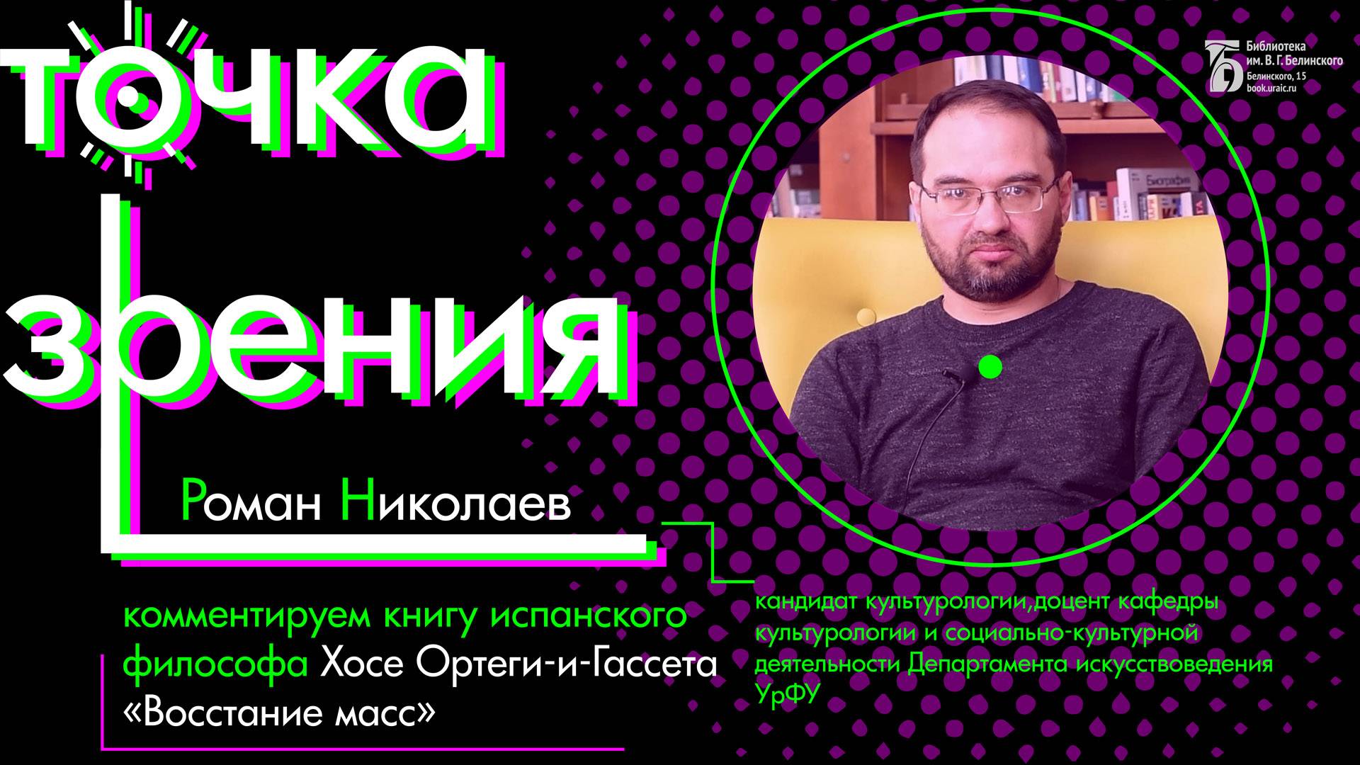 Социально-философский трактат «Восстание масс» описывает кризисное положение западной культуры XX века. В работе раскрывается зарождение и развитие «человека массы» как нового типа личности в условиях современного мира. Работа кладет начало современными исследованиям по проблемам массовой культуры, сохраняя свою актуальность по большинству поставленных в ней вопросов. Спикер – Николаев Роман, кандидат культурологии, доцент кафедры культурологии и социально-культурной деятельности Департамента искусствоведения УрФУ. Камера, монтаж: Анна Порошина. Свердловская областная универсальная научная библиотека им. Белинского http://book.uraic.ru/ сайт https://vk.com/club6745014 VK