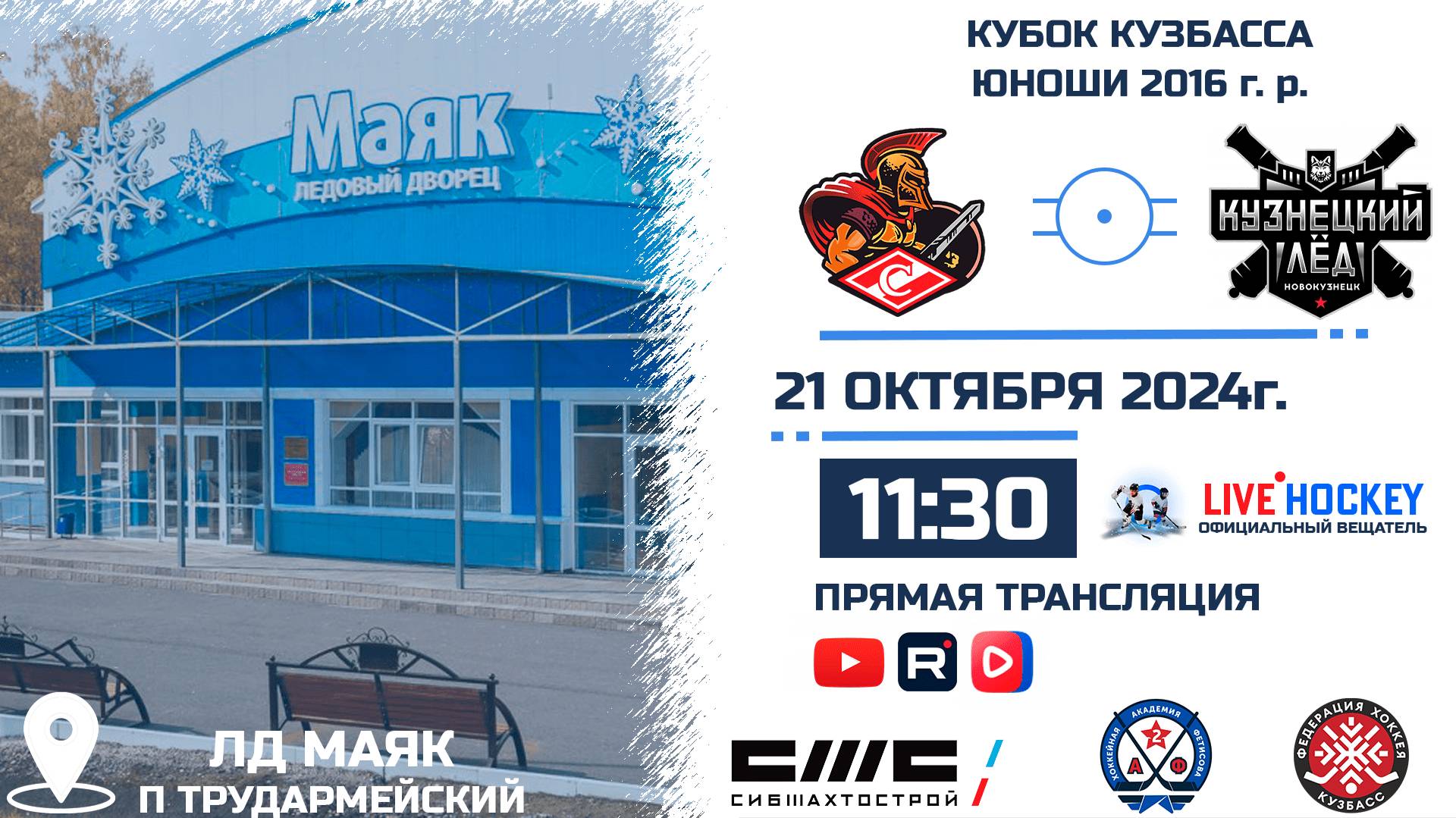 21.10.2024г. СПАРТАК 2016(Белово)-КУЗНЕЦКИЙ ЛЁД 2016(Прокопьевск). КУБОК КУЗБАССА. Сезон 2024-2025.