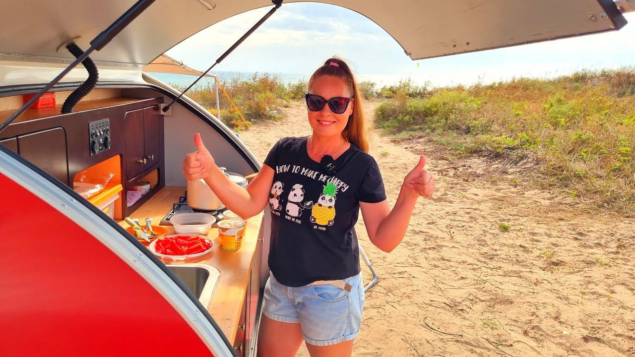 КАК МЫ ЖИВЕМ В ДОМЕ НА КОЛЕСАХ НА БЕРЕГУ МОРЯ. ГОТОВИМ ОБЕД. ПОКАЗЫВАЕМ ВСЕ. ШТОРМ ПРОДОЛЖАЕТСЯ.