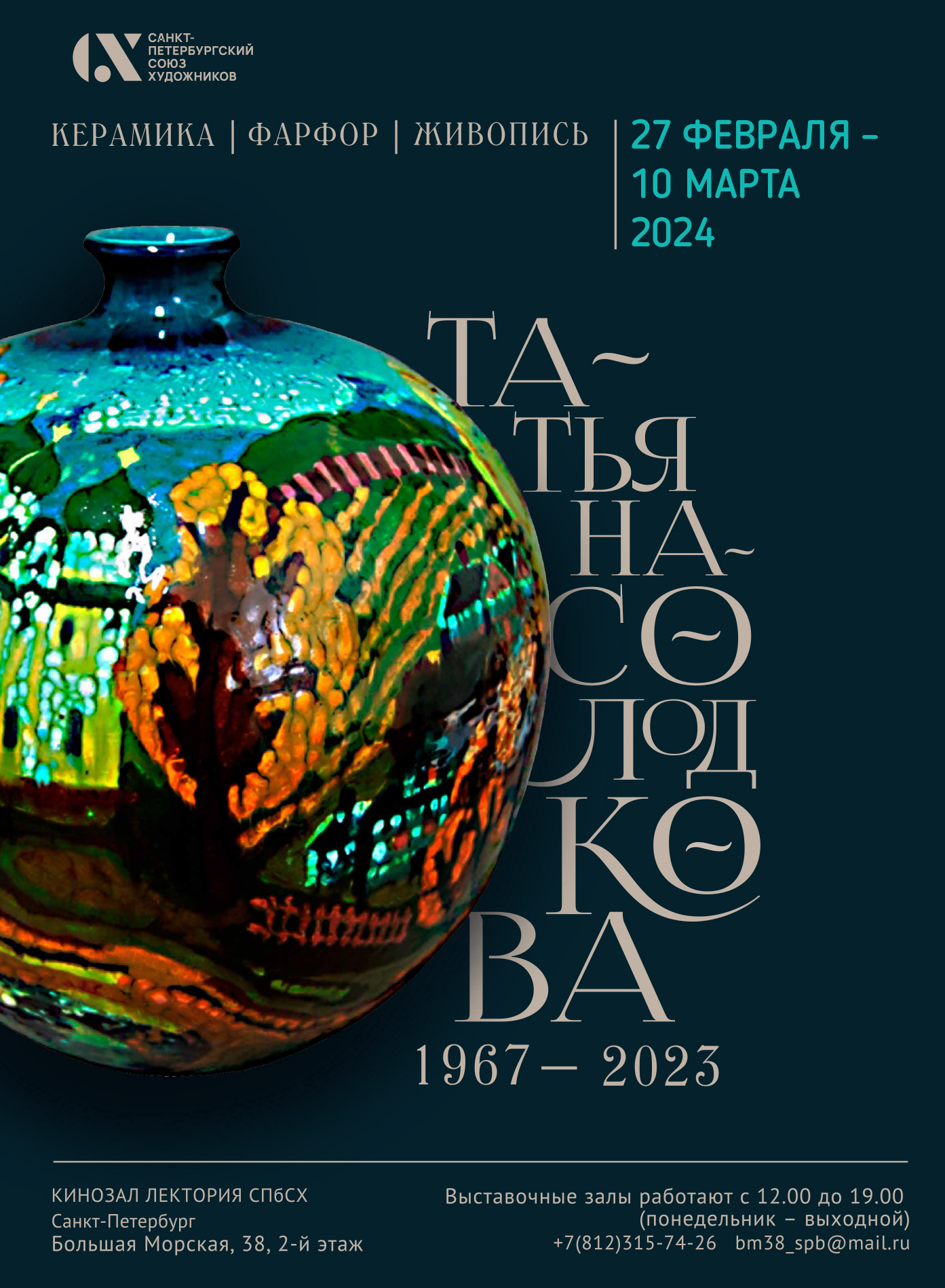 Предлагаем вашему вниманию видеозапись открытия выставки Татьяны Солодковой (1967 – 2023). Керамика. Фарфор. Живопись. Выставка проходит в Кинозале Лектория # СПбСХ и продлится до 10 марта 2024. Наш адрес: Большая Морская, 38 Мы открыты со вторника по воскресенье с 12:00 до 19:00. Единый билет на все выставки — 300 руб. Льготный (пенсионеры, студенты) — 100 руб. Дети — бесплатно. #СПбСХ_выставки