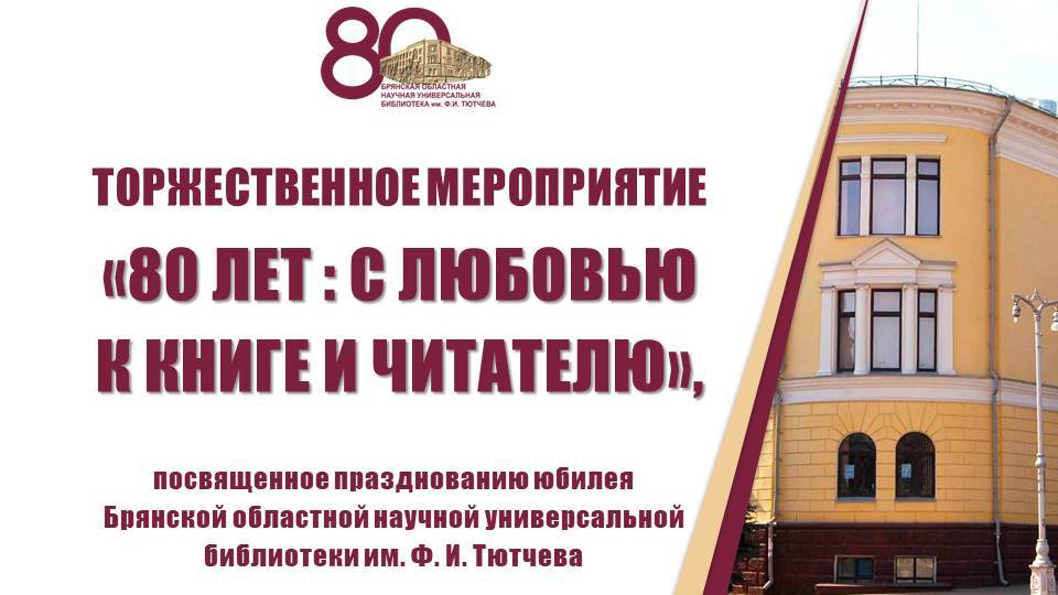 Торжественное мероприятие "80 лет: с любовью к книге и читателю", посвященное празднованию юбилея Брянской областной научной универсальной библиотеки им. Ф. И. Тютчева
