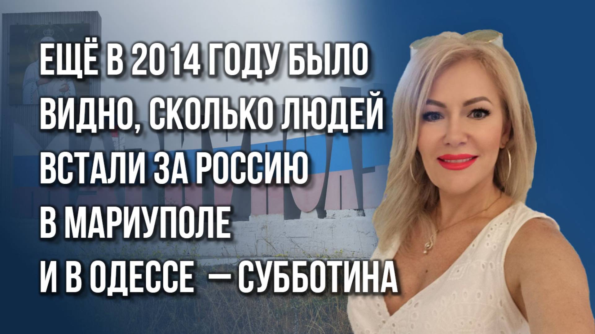 Певица, общественный деятель, волонтёр, советник Председателя по гуманитарным вопросам и культурным проектам Общероссийской общественной организации «Российский союз офицеров запаса» Миллена Субботина в студии Украина.ру рассказала об Одессе и Мариуполе, о начале СВО, о творчестве, детях, гуманитарной деятельности и о надеждах от 2025 года. 00:40 – О судьбе Одессы; 05:50 – О начале СВО; 13:49 – О волонтёрской и гуманитарной деятельности; 18:05 – Об изменениях в творчестве; 21:23 – Об ожиданиях от 2025 года; 24:25 – О составляющих праздника; #Субботина #Одесса #Мариуполь #КуликовоПоле #2мая #расстрел #концерт #Цыганова #Кобзон #Мариуполь #Донецк #СВО #спецоперация #конфликт #война #гуманитарка #помощь #волонтёрство #ДеньПобеды #Порошенко #РФ #Россия #Украина #Путин #Зеленский #старость #старики #дети #реабилитация #исцеление #2024 #президент #2025 #музыка #2014 #творчество #флешмоб #мир #НовыйГод #оливье #вдохновение #надежда ТГ-канал Миллены Субботиной: https://t.me/MillenaSubbotina Наш канал Вконтакте: https://vk.com/ukraina_ru_official Telegram: https://t.me/ukr_2025_ru Одноклассники: https://ok.ru/ukrainaru Дзен: https://dzen.ru/ukraina.ru Rutube: https://rutube.ru/channel/4478643 Наши подкасты: https://vk.com/podcasts-72801118 ТГ-канал с нашими видео и подкастами: https://t.me/podcast_ukrainaru Наш сайт: https://ukraina.ru
