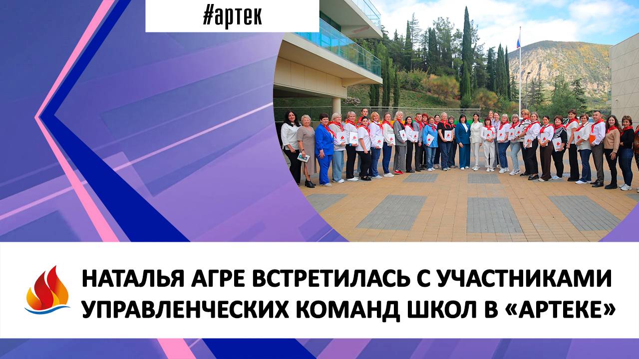 Директор Департамента государственной политики в сфере воспитания, дополнительного образования и детского отдыха Минпросвещения РФ Наталья Агре и директор «Артека» Константин Федоренко встретились с представителями управленческих команд школ, которые прошли обучение в «Артеке». На встрече обсудили актуальные вопросы образовательной и воспитательной деятельности.