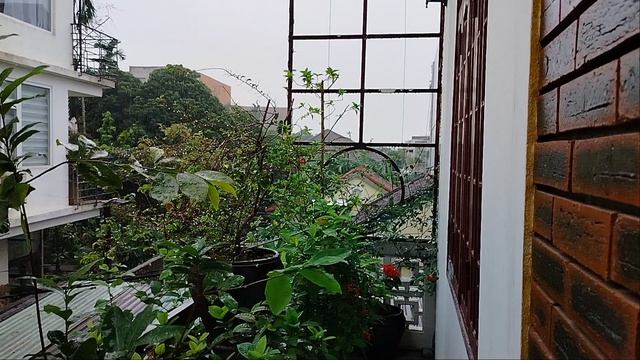 На балкончике...дождина..