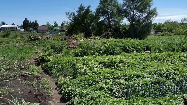 Поливаю чеснок мотопомпой. Попутно занимаюсь другими важными делами на участке