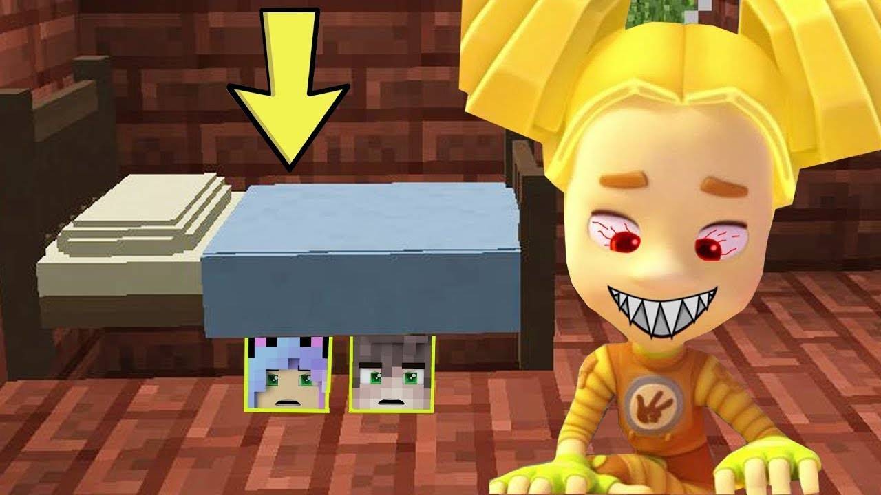 СПРЯТАЛАСЬ ПОД КРОВАТЬЮ ОТ ШПУЛИ EXE МОНСТР В МАЙНКРАФТ ФИКСИКИ НОВАЯ СЕРИЯ MINECRAFT