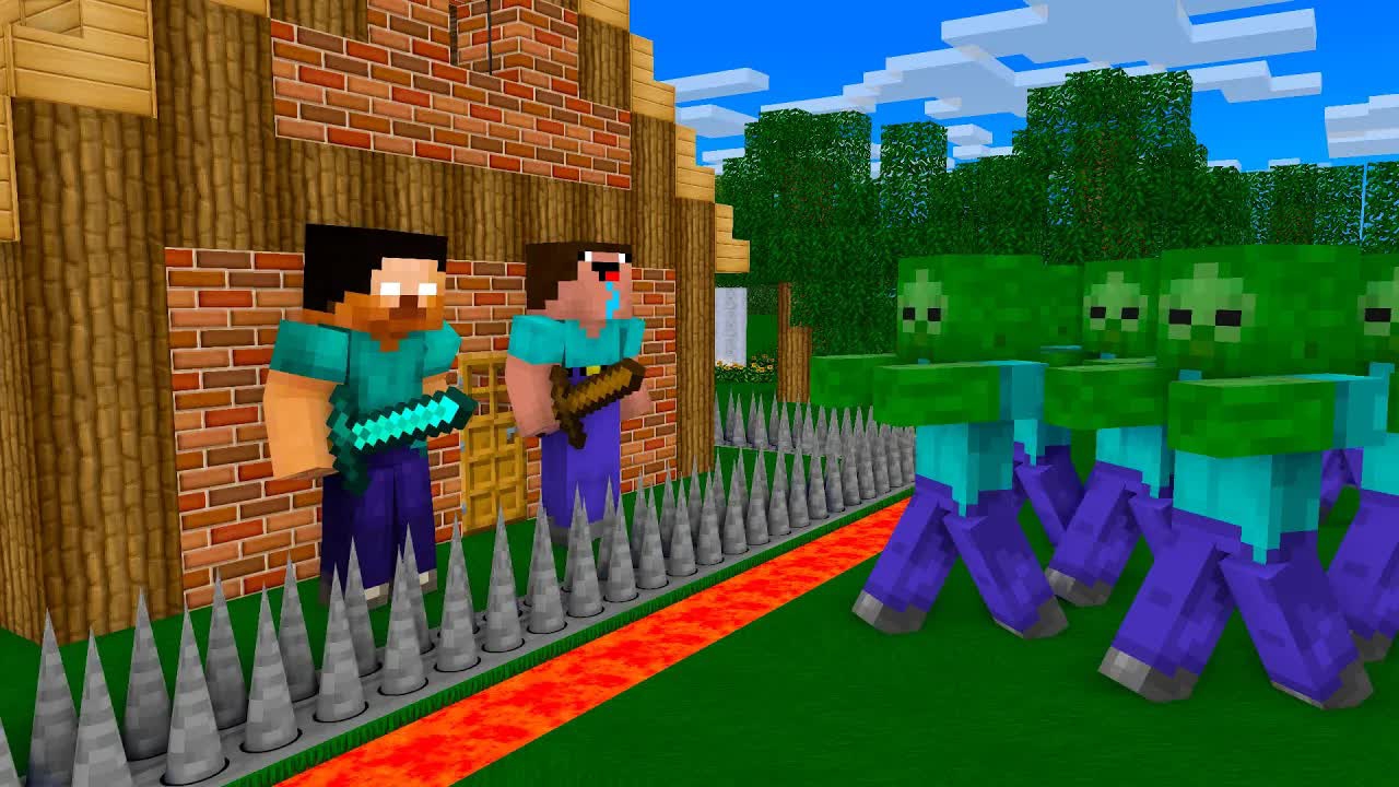 100 злобных зомби АТАКУЮТ дом! Геробрин и Нуб должны сбежать - Анимация для Майнкрафта