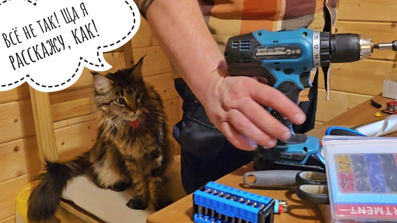 И никто не догадывается, что главный арбузер в доме я, а Артём - главная жертва. Светильник мы задумали повесить на это место, когда посидели в темноте с фонариком при отключении электричества. А потом вспомнили, что одна розетка запитана от аккумуляторов. Так что, теперь этот светильник будет работать и освещать стол, когда снова отключат электричество. #owlhouse #cutecat #russianwinter