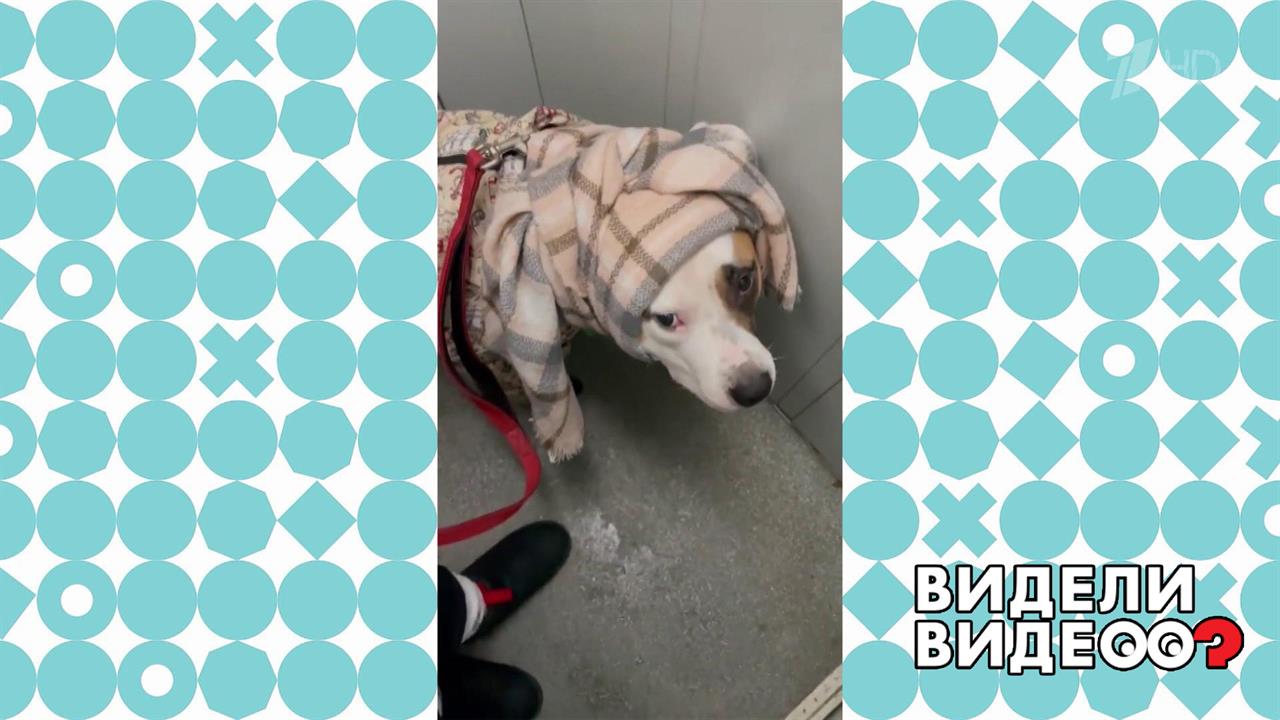Американский стаффордширский терьер Эмма собралась гулять в импровизированной шапочке.