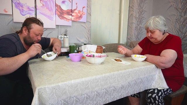 вкусный обед вместе с мамой