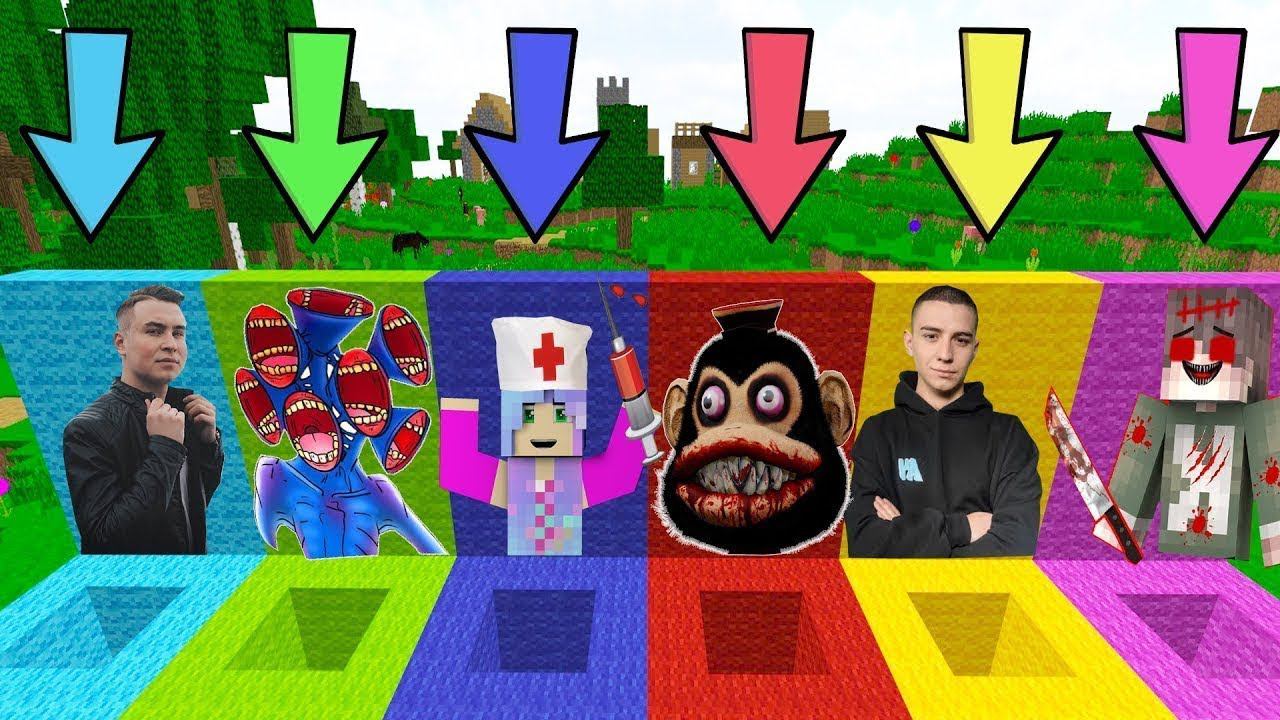 ВЫБЕРИ ПРАВИЛЬНУЮ ЯМУ SCP ПЕРСОНАЖЕЙ КСЮША EXE КОЛЯ СИРЕНОГОЛОВЫЙ ГЛЕНТ КОБЯКОВ В МАЙНКРАФТ FNAF 9