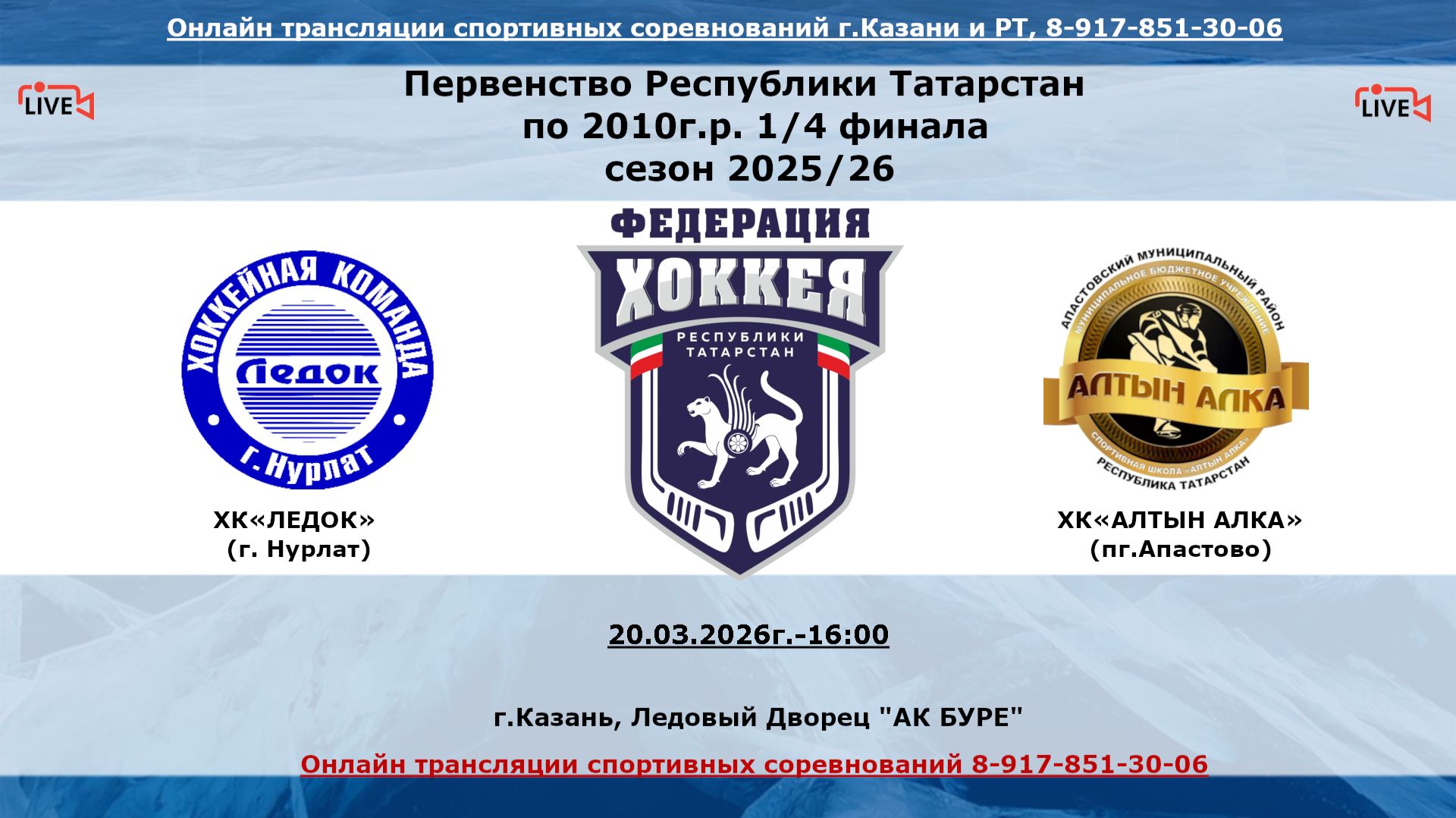 ХК«ЛЕДОК» (г. Нурлат) - ХК«АЛТЫН АЛКА» (пг.Апастово)