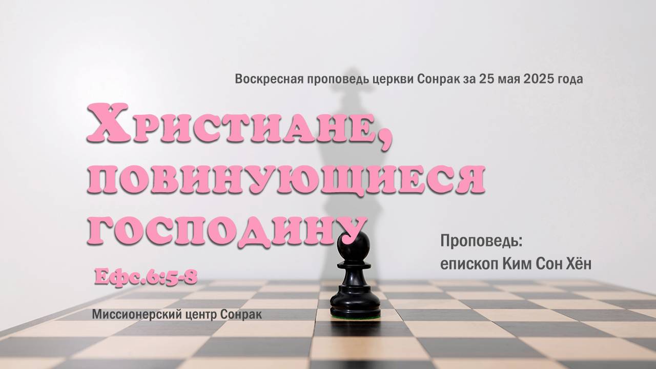 «Почему я должен повиноваться человеку? Я повинуюсь только Богу!». К сожалению, сегодня это обычная позиция многих христиан. Однако через апостола Павла Господь сказал: «Рабы, повинуйтесь господам своим по плоти со страхом и трепетом, в простоте сердца вашего, как Христу». Мы, христиане, почитаем Христа своим Господином, но также должны уважать своего земного господина. Это касается не только времён тысячелетней или столетней давности. И сегодня кто-то нанимает других на работу, а кто-то трудится, будучи нанятым. Следовательно, отношения между господами и рабами, угодные Господу, актуальны и сегодня. Для христианина послушание своему господину по плоти — это часть послушания Христу. Независимо от того, добрый господин или нет, мы должны относиться к нему со страхом и трепетом. Сказано поступать так ради вечного Господина. Выражение «со страхом и трепетом» не означает, что нужно бояться господина, говорится об искреннем отношении: «Как же помочь моему господину преуспевать? Как же радовать его?». Такой человек становится свидетельством веры для неверующих, поддержкой для верующих, а перед Богом прославляет Его имя. Кто утверждает: «Я раб Христа, а не человека!», тот должен подтвердить свои слова повиновением земному господину, потому что это строгое повеление Христа. Если человек трудится только перед глазами господина, а в его отсутствии пренебрегает своими обязанностями, то он лишь раб человека. Кто действительно считает себя рабом Христа, тот будет повиноваться от всего сердца, независимо, наблюдает за ним господин или нет. Ведь повиновение господину по плоти — это повиновение Христу. Поэтому, повиновение своему земному господину, не должно быть вынужденным, а добровольным и радостным. Зависть или ревность к своему господину говорит о нечистом сердце. Кто перед глазами господина исполняет доверенные дела, а за его спиной критикует или насмехается, тот далёк от искренности и чистоты по отношению ко Христу. Человек, называющий себя рабом Христа, не должен умалять свою ценность видимой услужливостью. Чтобы ваша личность была признана Богом благородной и искренней, нужно служить своему господину в простоте своего сердца. Господин может не замечать ваши усердия или кто-то другой может присвоить себе плоды ваших долгих усилий, и никто может не оценить вашего старания и искренности, от этого может быть горько. Но истинный раб Христа преодолеет внутреннюю борьбу и поднимется на ступень выше. Бог помнит все дела, которые мы совершаем ради Его имени, и обязательно компенсирует в день суда. Высокое или низкое положение в этом мире не имеет вечной ценности и не повлияет на результат последнего суда. Поэтому, давайте избавимся от ограниченного мышления и будем использовать драгоценное время, данное нам, ради ценных и прекрасных дел! Христиане, повинующиеся господину Ефc.6:5-8 Воскресная проповедь церкви Сонрак за 25 мая 2025 года Проповедь: епископ Ким Сон Хён Миссионерский центр Сонрак вся проповедь здесь ↓↓↓↓↓↓↓↓↓↓↓↓↓ https://rutube.ru/video/624ca976cbda1fb43c348ccf4f48038b/?r=wd Музыка Треков: 1 Pictures Memories Top Flow Pictures Memories Музыка ЭЛ.ПОЧТА: berearussia2015@gmail.com САЙТ: http://www.berearussia.org/ ЮТУБ: https://www.youtube.com/channel/UCHrXAWxq5MlDJoY87fMjknw РУТУБ: https://rutube.ru/channel/25256916/about/ ТЕЛЕГРАМ: https://t.me/BLGOMISLIE ОДНОКЛАССНИКИ: https://ok.ru/profile/145281546893 ЯНДЕКС ДЗЕН: https://zen.yandex.ru/id/62327455dfb5ea6bd6b08d31 В КОНТАКТЕ: https://vk.com/id7139589